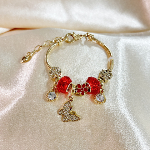 Neues Modisches Design Schmetterling Blumen Perlen Charm Armbänder für Damen in Verstellbarer Größe