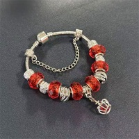 แฟชั่นคริสต์มาสสีแดงลูกปัดกำไลซานตาคลอสกวางเรนเดียร์จี้เสน่ห์สร้อยข้อมือเครื่องประดับสำหรับผู้หญิงสาว